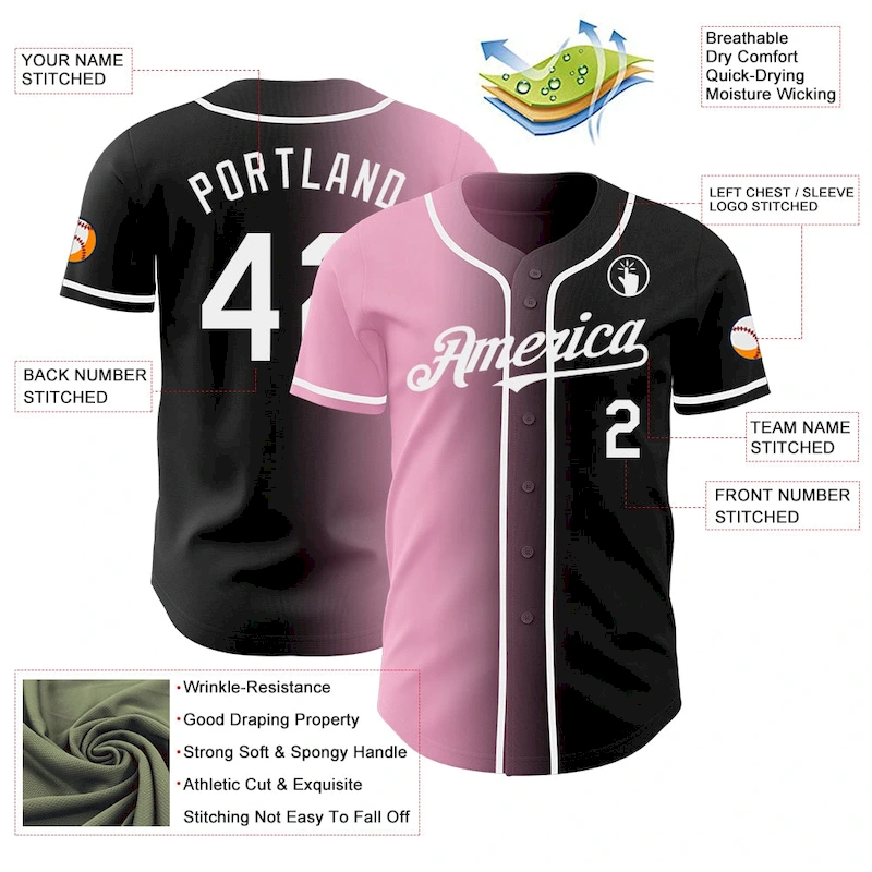 Custom-Black-WhiteLight-Pink-Authentic-Gradient-Fashion-Baseball-Jersey