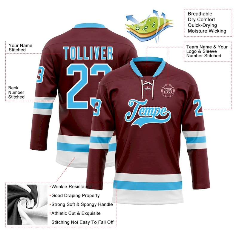 Custom Burgundy Sky Blue-White Hockey Lace Neck Jersey