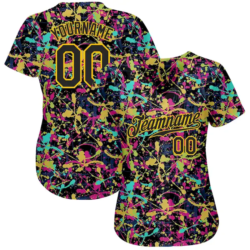 Custom Graffiti Pattern Black-Gold 3D Grunge Shabby Authentic Baseball Jersey