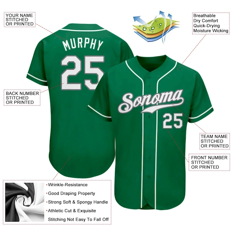 Custom Kelly Green White-Gray Authentic St. Patrick’s Day Baseball Jersey