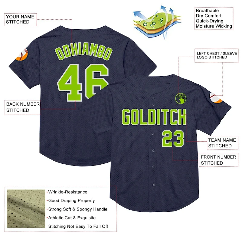 Each ® tailored baseball jersey is meticulously personalized with the following features:Material: 100% PolyesterJersey with Stitched name & numberMoisture-wicking fabric has spongy handle, good draping property and elasticity as well as good dimensional stability and wrinkle-resistanceBreathable & Quick-DryingAthletic Cut & Exquisite stitching not easy to fall offRounded droptail hemTagless Collar offers clean comfortV-Neck with Rib-Knit trim aroundShort SleeveMachine wash, Do Not Tumble DryNon-alcoholic Available For Wiping or WashingImported