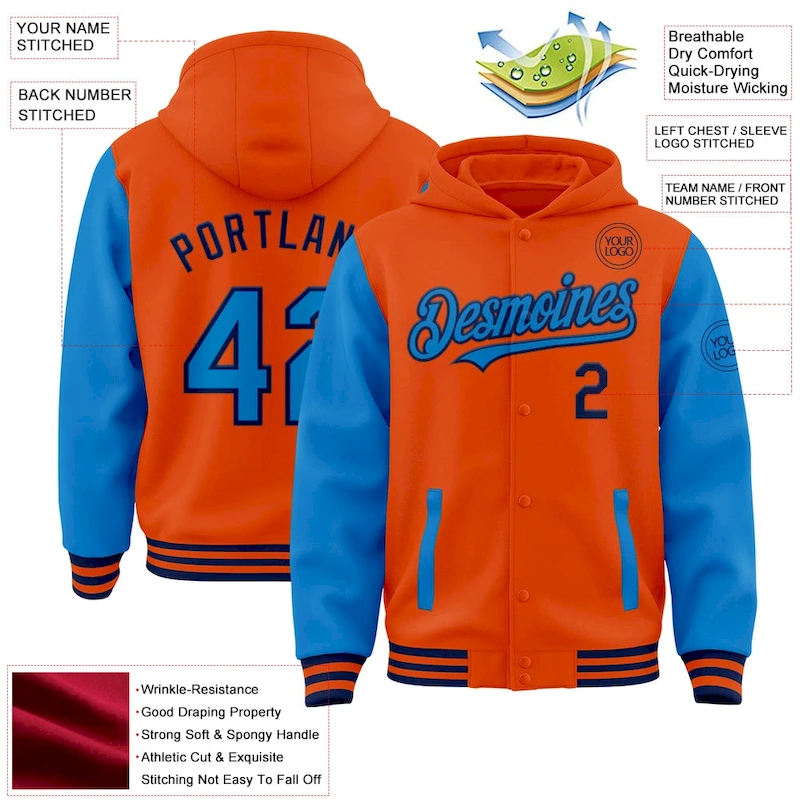 SKU: Custom-Orange-Powder-BlueNavy-Bomber-FullSnap-Varsity-Letterman-Two-Tone-Hoodie-Jacket Categories: , Tags: ,